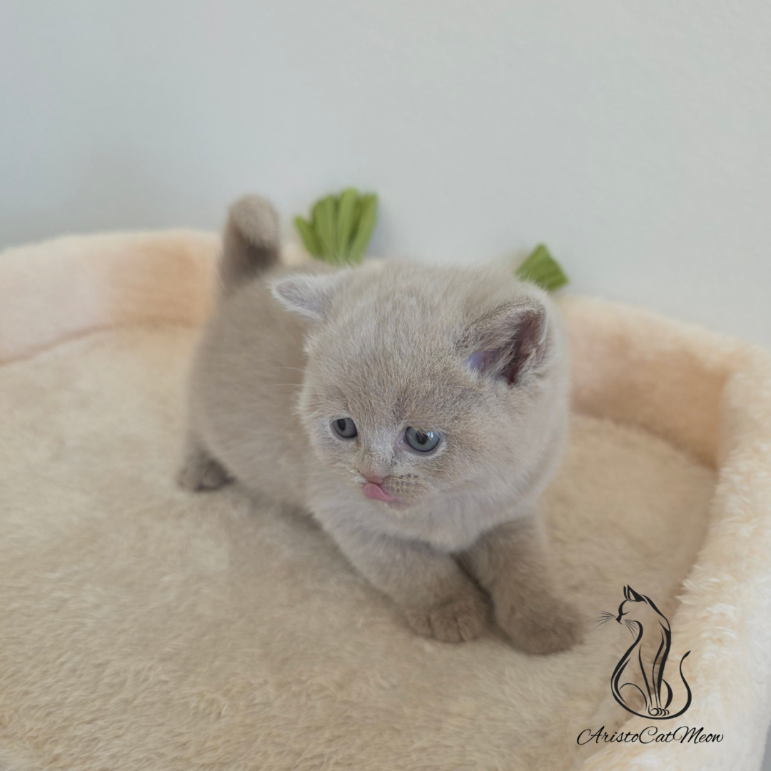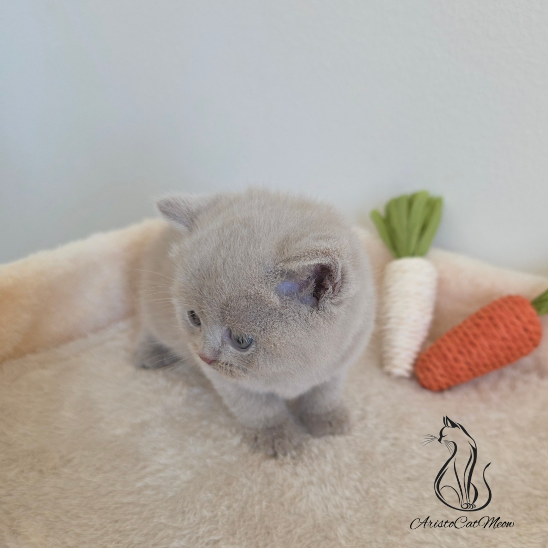 Meet our adorable British Shorthair “teddy bear” kitten — a truly sweet, gentle, and affectionate little companion. With a plush, velvety coat in a rare and elegant fawn color, this kitten has the classic round face, chubby cheeks, and calm expression that make the British Shorthair so beloved.